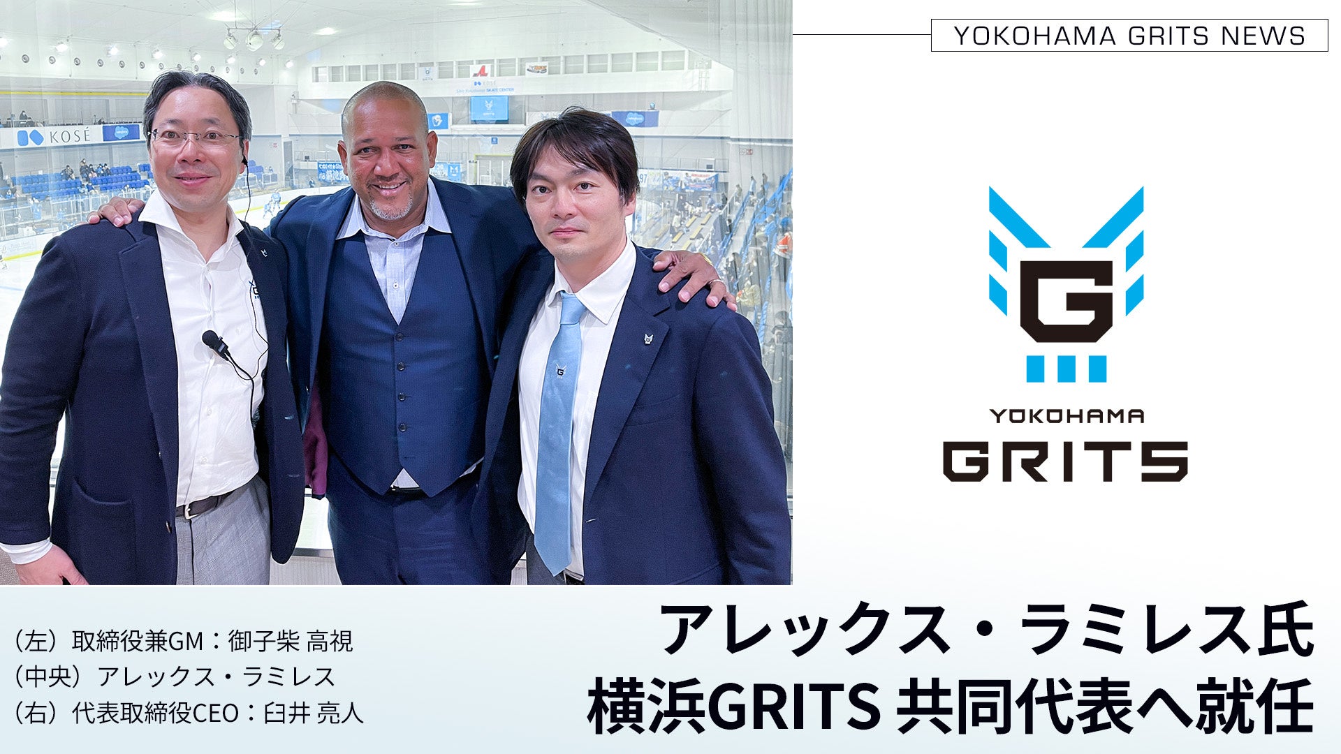 横浜GRITSアイスホッケーチームは、GRITSスポーツイノベーターズ株式会社代表取締役・臼井亮人、同社取締役兼チームGM御子柴高視、アレックス・ラミレスの3名による共同代表でチーム運営を担って参ります。