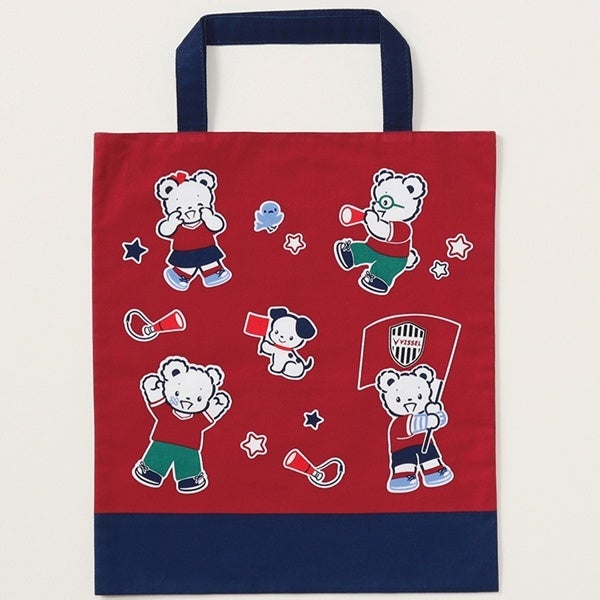 今シーズンのコラボレーショングッズは、縦型トートバッグと巾着の2種類となり、世代を問わず愛されるファミリアのオリジナルキャラクター、ファミちゃんやリアちゃんなどがヴィッセル神戸のフラッグやメガホンを持って応援する様子や、サッカーの練習をしている様子が描かれたデザインとなっています。