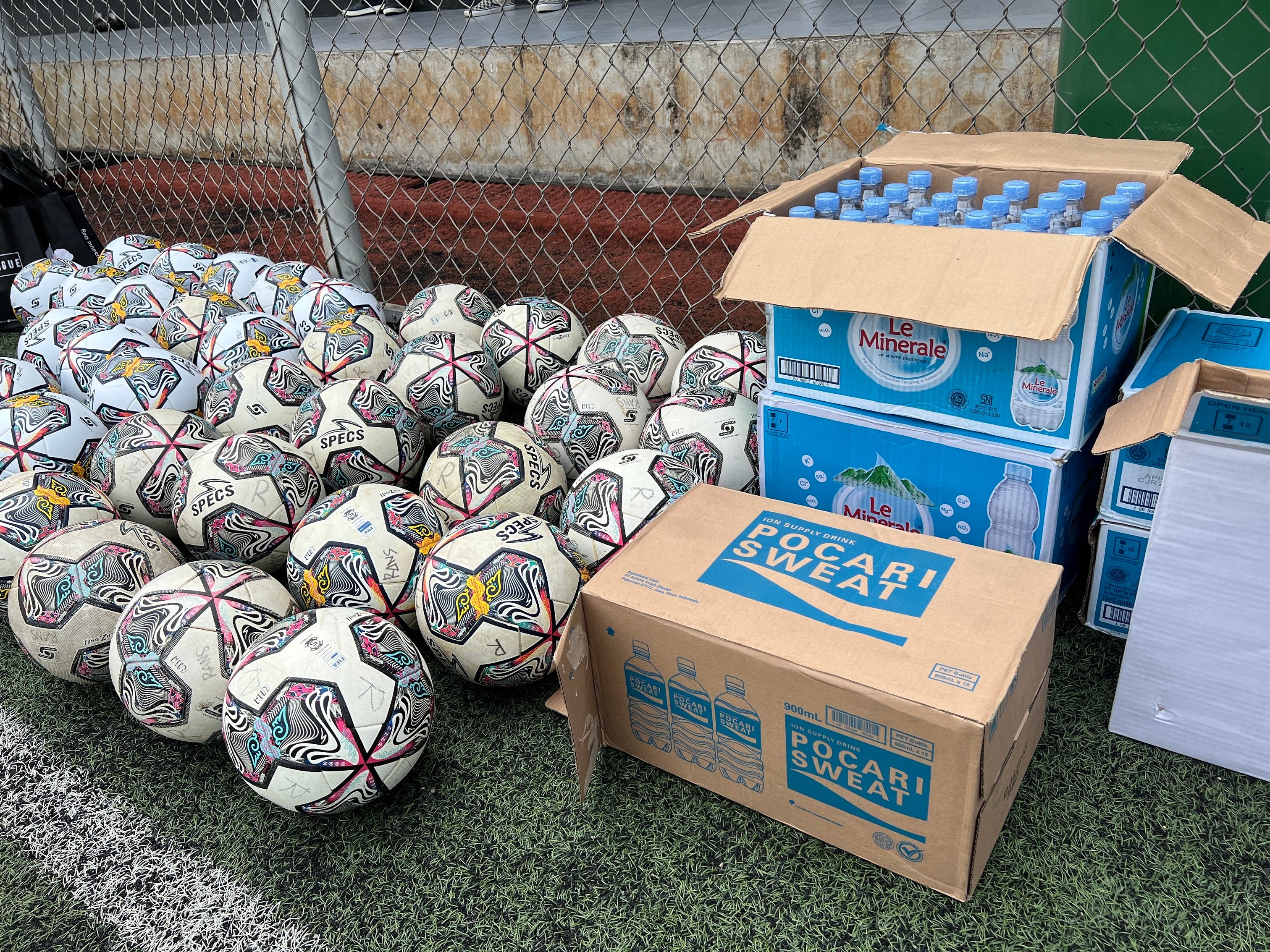 「東京ヴェルディ・クリニック ジャカルタ by TechSports」は、当社がメインスポンサーを務め、東京ヴェルディと現地の日系企業「Samurai bola社(https://samuraibola.com/)」の全面的な協力を得て、成功裏に終えました。東京ヴェルディがスクールコーチ一名、強化部ビジネスディレクター、およびインドネシア語の通訳者を派遣し、Samurai bola社がインドネシアにおける様々なコーディネーション業務を担いました。Samurai bola社は現地で広範なネットワークを持つ企業であり、複数のインドネシア一部チームとの事前交渉に始まり、グラウンド確保、ロジの用意、掲載バナー用意、スポンサー企業との交渉を行いました。当日は、マンダム社(PT Mandom Indonesia Tbk.)と大塚製薬社(PT Amerta Indah Otsuka)から物品提供をいただき、多くの子供たちの笑顔につながりました。