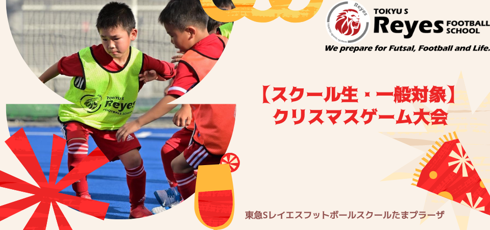 東急Sレイエス フットボールスクール たまプラーザでは、12月24日(土)に年中~小学2年生を対象としたゲームイベント『クリスマスゲーム大会』を開催いたします。最後にはサンタクロースからみんなにクリスマスプレゼントがありますので、是非お気軽にご参加ください。