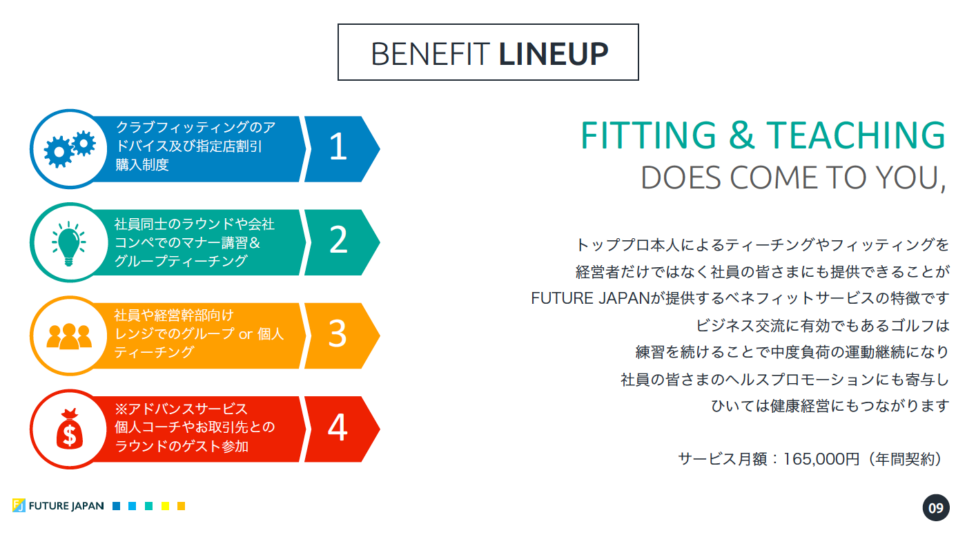 FUTURE JAPAN株式会社は、2023年1月から、一般企業向けにゴルフティーチングを軸とした福利厚生サービスの提供を開始いたします。