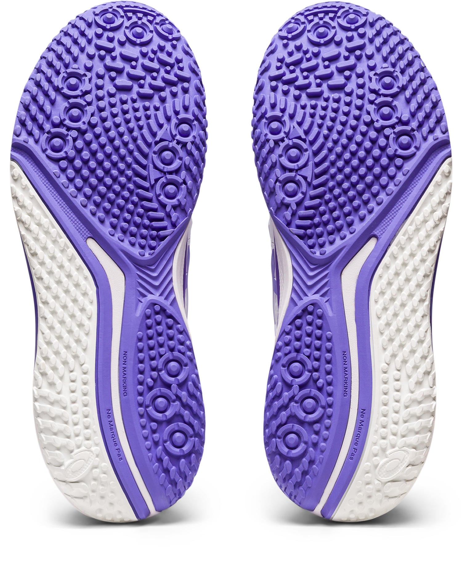 シューズの外側周囲には、壁状の樹脂パーツを大きく配した「DYNAWALL(ダイナウォール)」構造を採用しています。左右へ動いた際に樹脂パーツが足をしっかり支え、パワーロスを抑制し、逆方向への力強く素早い切り返しをサポートします。また、かかと部まで構造を伸ばしたことにより、着地時に大きな地面反力を得ることができ、安定性も前作より高くなっています。靴底は、かかと部から前部外側にかけて溝を施した分割構造としています。着地時に地面との接地面積を大きくすることで、安定した着地を実現します。