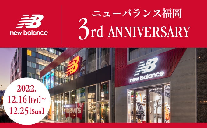 ニューバランス福岡がおかげさまで3周年を迎えます。日頃のご愛顧に感謝して、12月16日(金)から12月25日(日)の期間中、myNB会員様向けのWポイントキャンペーンや、シューケアEVENTを開催いたします。また、都市生活者のためのアパレルライン「MET24」の魅力を表現したブック「New Balance MET24 in FUKUOKA」をご来店でプレゼントいたします。ぜひこの機会に、ニューバランス福岡へお越しください。