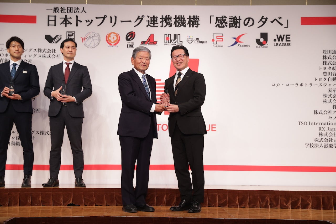 この度、B.LEAGUEも所属し、ボールゲーム9競技の日本の最高峰12リーグの競技力の向上と運営の活性化を目指した活動を行っている「日本トップリーグ連携機構」の、トップリーグトロフィーを受賞いたしました。
