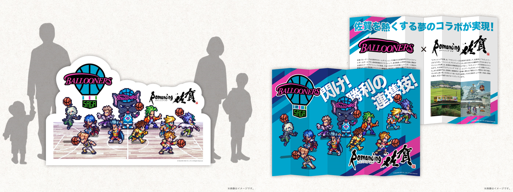 佐賀バルーナーズとロマンシング佐賀プロジェクトは、ともに佐賀県を盛り上げたいという想いが一致し、今回の取組につながりました。バスケットボールの試合を盛り上げる「サガ」シリーズの人気楽曲や、来場者限定のノベルティにコラボグッズなど盛りだくさんのコラボレーションになっています。