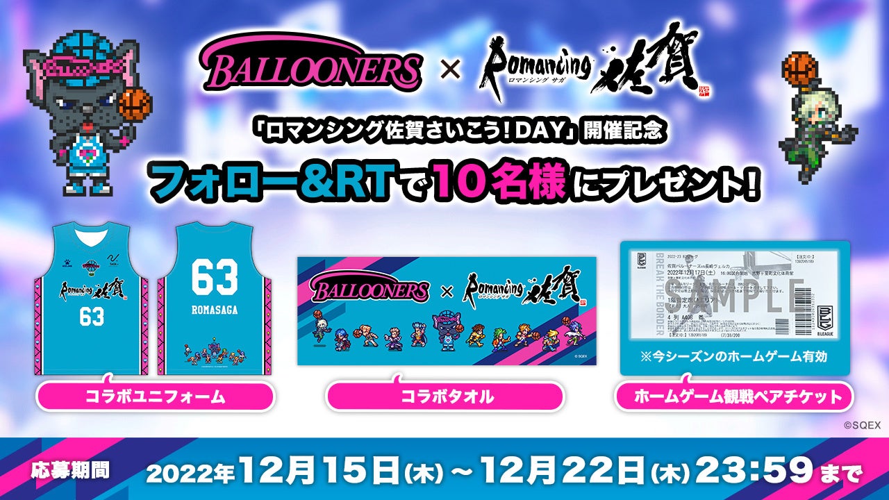 佐賀県は、佐賀市を拠点とするB.LEAGUEのプロバスケットボールチーム「佐賀バルーナーズ」と「ロマンシング佐賀」がコラボしたスペシャルマッチ「ロマンシング佐賀さいこう!DAY」を2023年1月7日(土曜日)、8日(日曜日)の2日間開催します。開催に向けて、本日2022年12月15日(木曜日)から一般チケットの発売とTwitterキャンペーンを開始します。
