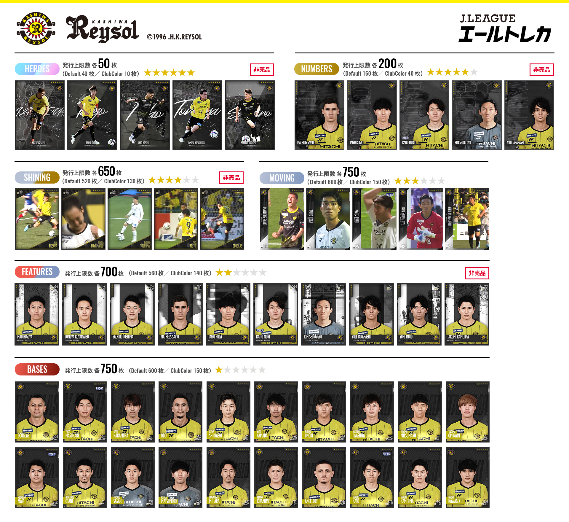 発行上限数 各650枚(Default 520枚/ClubColor 130枚)
