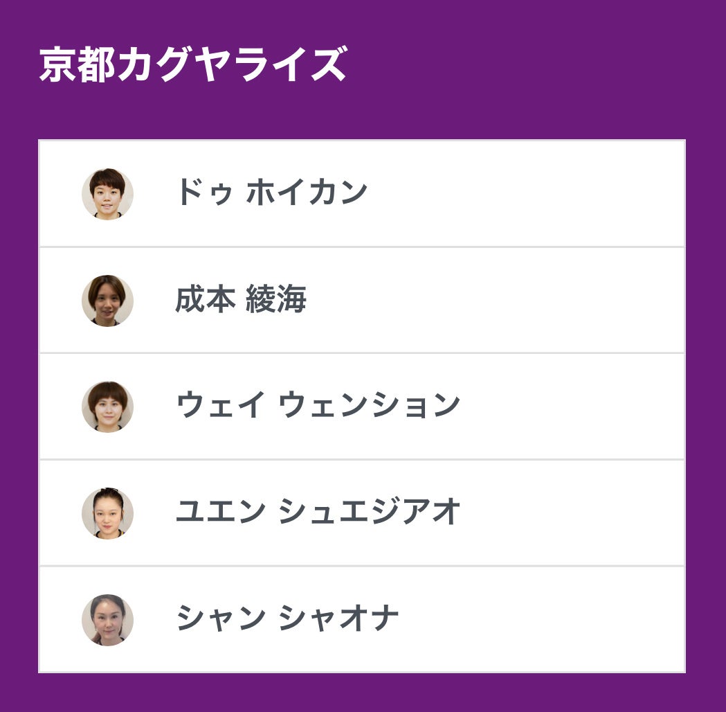 12月17日(土) 鳴門・大塚スポーツパーク アミノバリューホール(徳島県) 開催 の京都カグヤライズ vs トップおとめピンポンズ名古屋のベンチ入り選手を発表いたします。