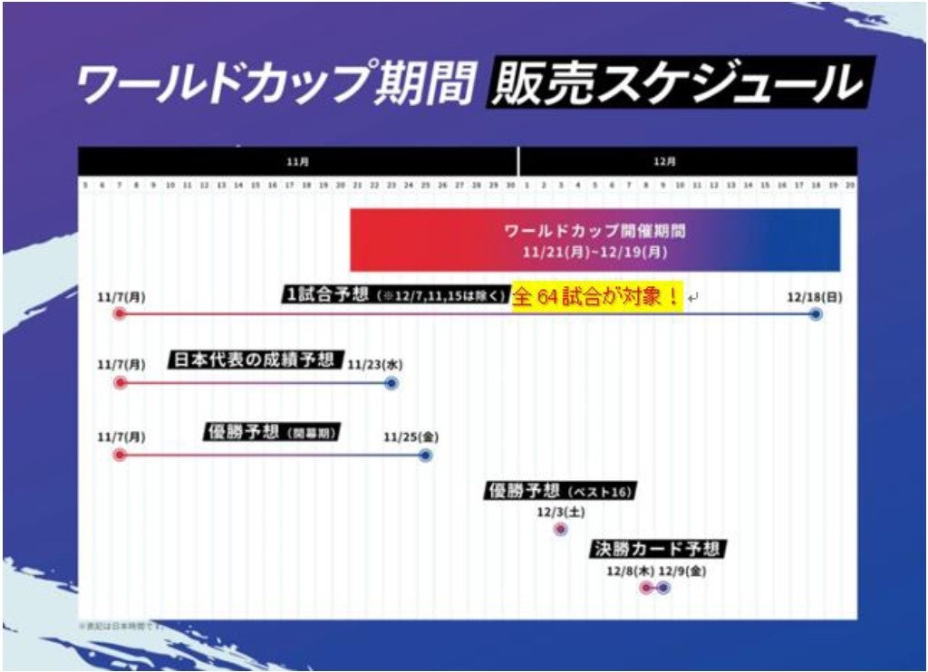 ※4 「W杯 2022 優勝予想(開幕期)」は、優勝チームについて32択から予想するくじで、11月7日(月)~11月25日(金)に販売されたものです。