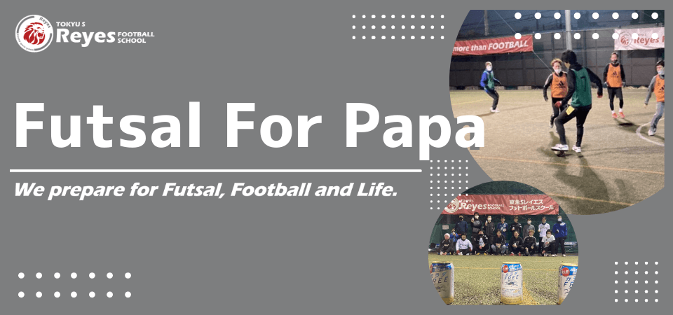 東急Sレイエス フットボールスクール あざみ野では、12月29日(木)にアディダスフットサルパークあざみ野にて、お父様方を対象としたゲームイベント『Futsal For Papa』を開催いたします。フットサルをやってみたい、身体を動かしたい方を対象に、個サルは集まった方で楽しくゲームをいたします。フットサルを初めてプレーされる方でも、コーチが楽しく丁寧にサポートいたしますので、ぜひご参加ください。