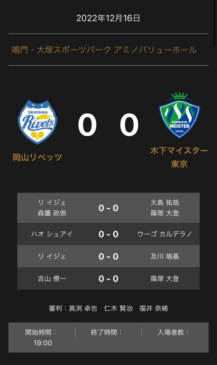 ホームプレスリリース ノジマTリーグ 2022-2023シーズン 公式戦 12月16日 19:00 試合開始 岡山リベッツ vs 木下マイスター東京 対戦オーダー発表 2022年12月16日 19時09分 公開|スポーツマニア編集部プレスリリース 一般社団法人Tリーグのプレスリリース ノジマTリーグ 2022-2023シーズン 公式戦 12月16日(金) 19:00試合開始 岡山リベッツ vs 木下マイスター東京 対戦オーダーが発表されました。