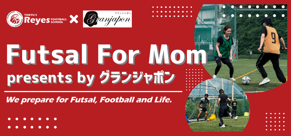 東急Sレイエス フットボールスクール あざみ野では、12月23日(金)にアディダスフットサルパークあざみ野にて、お母様方を対象としたフットサル教室『Futsal For Mom presents by グランジャポン』を開催いたします。参加した方にはオフィシャルスポンサーのグランジャポン様の商品をプレゼントいたします。皆様のご参加をお待ちしております。