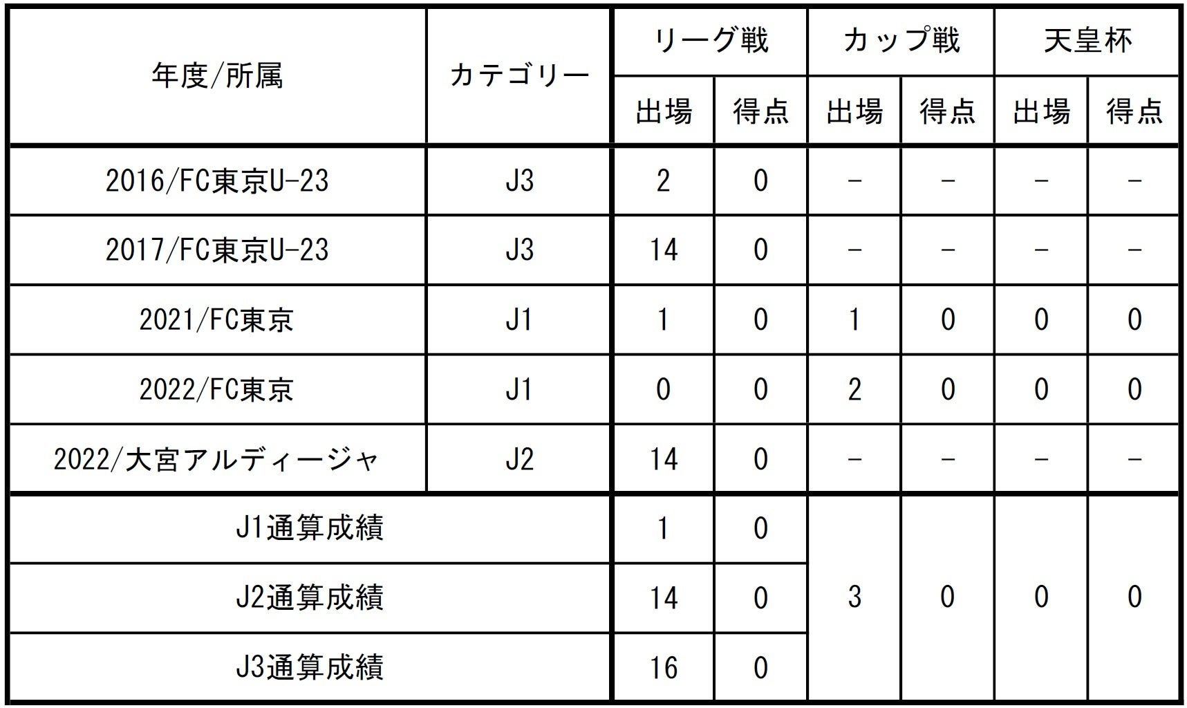 □出場記録(2022シーズン終了時点)