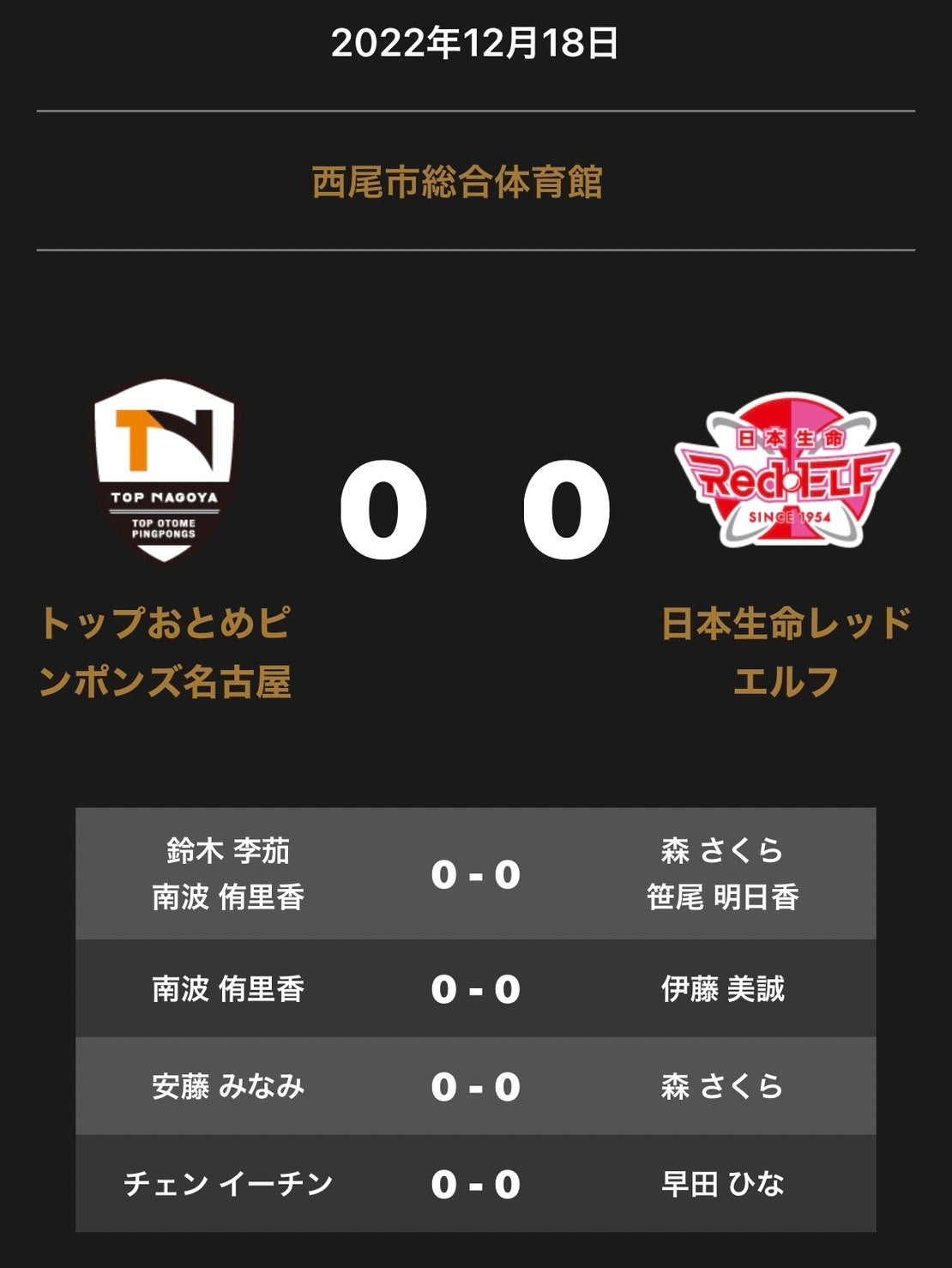 ホームプレスリリース ノジマTリーグ 2022-2023シーズン 公式戦 12月18日開催トップおとめピンポンズ名古屋vs 日本生命レッドエルフ オーダー発表 2022年12月18日 15時08分 公開|スポーツマニア編集部プレスリリース 一般社団法人Tリーグのプレスリリース 12月18日(日)15:00試合開始 トップおとめピンポンズ vs 日本生命レッドエルフ 会場:西尾市総合体育館 (愛知県) 対戦オーダーが発表されました。