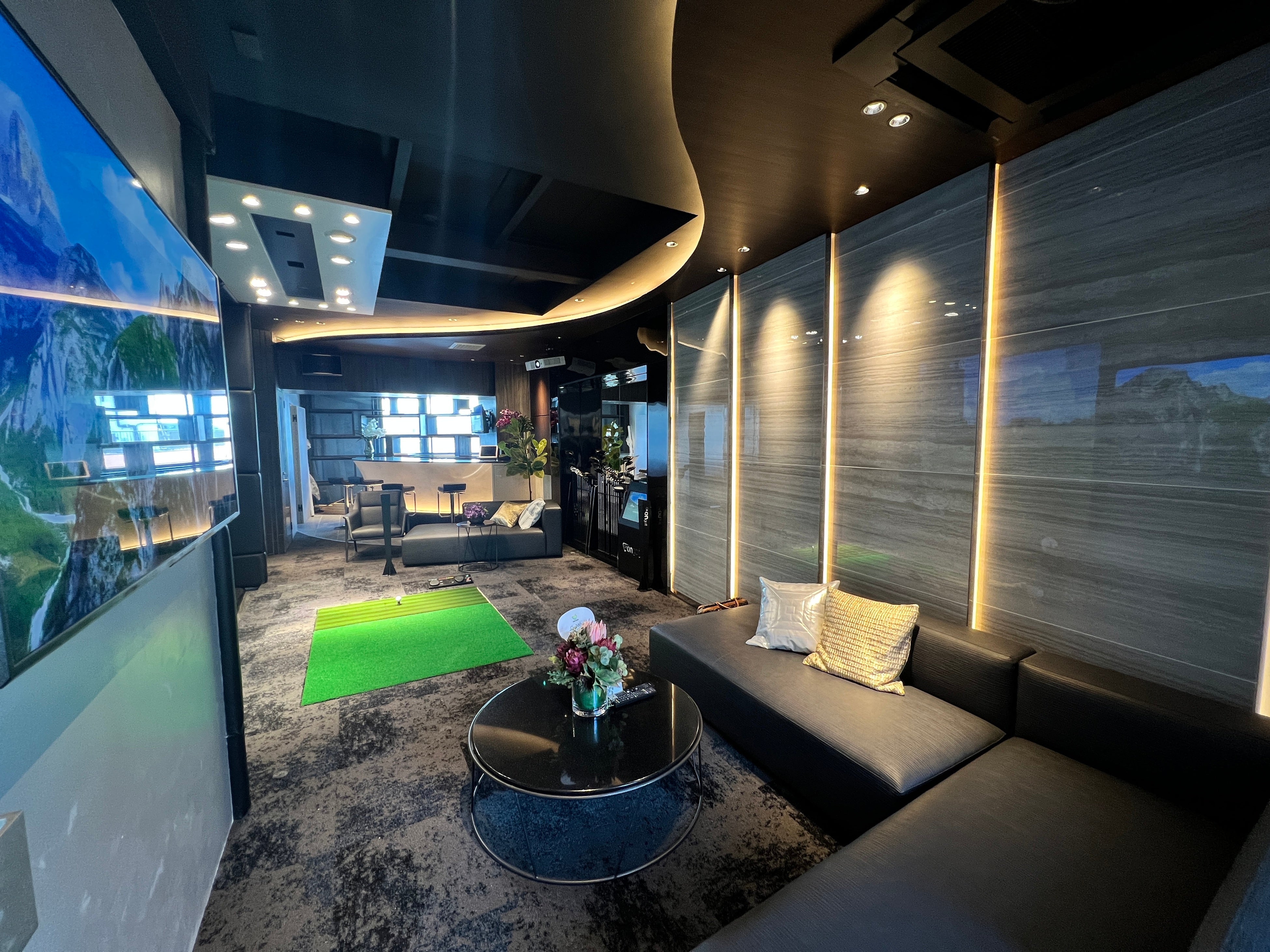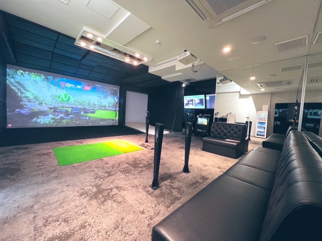 最先端のゴルフシミュレーション機器、最新モデルのレンタルクラブ、ドリンクフリーなどアメニティも充実。