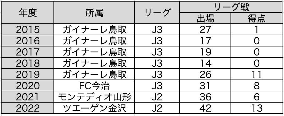 長洲SC – 大阪産業大附属高 – ガイナーレ鳥取 – FC今治 – モンテディオ山形