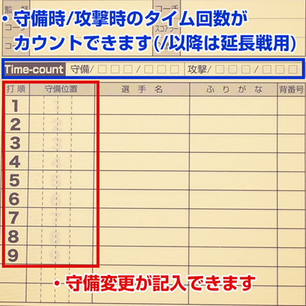 従来のメンバー表にはなかった、変更後の守備位置を記入できる欄があります。この有無によって使い勝手に大きな差がでます。