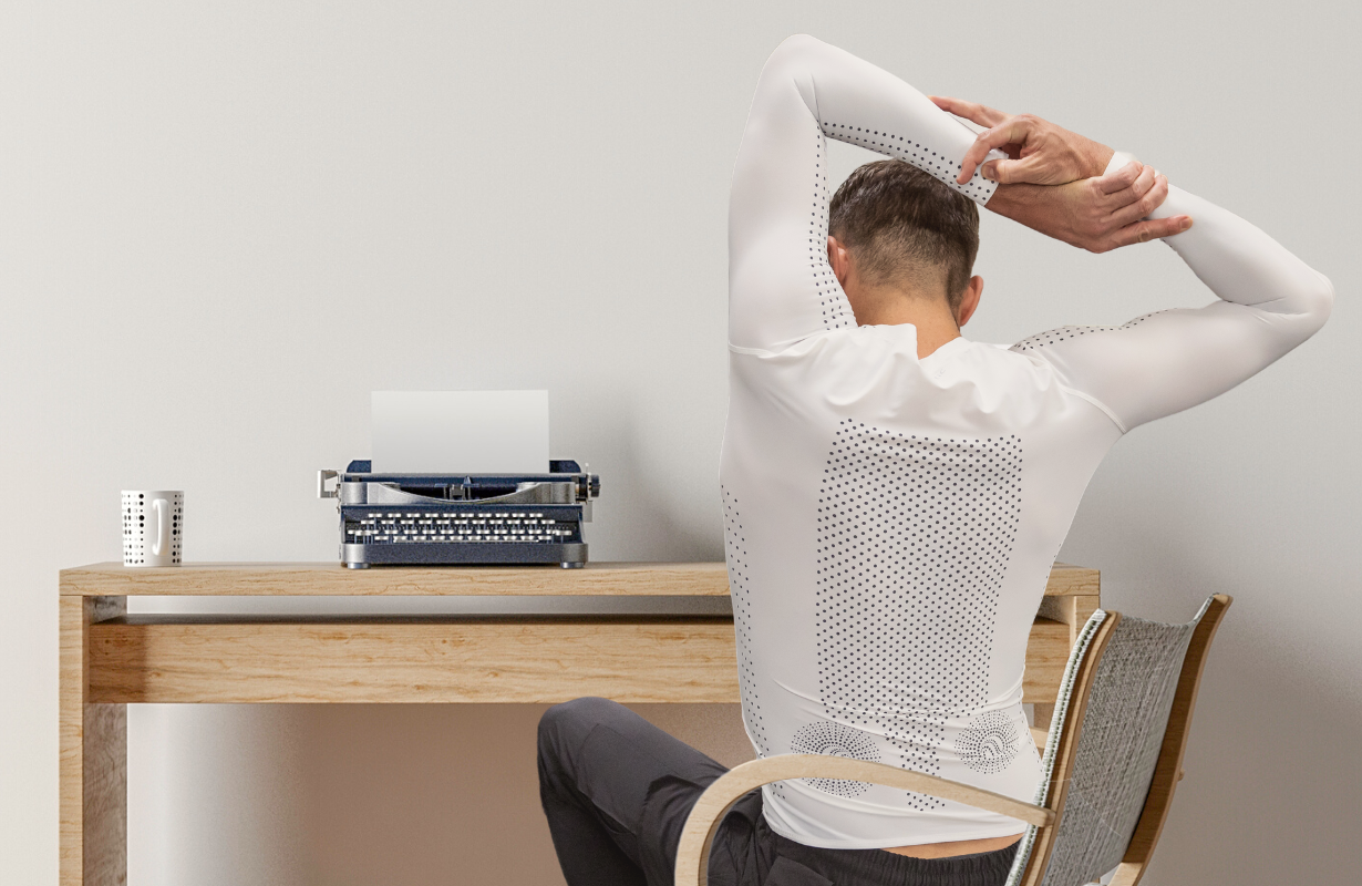 デスクワークやトレーニング中の姿勢が崩れやすい局面でも、強加圧により正しい姿勢をサポートしてくれます。