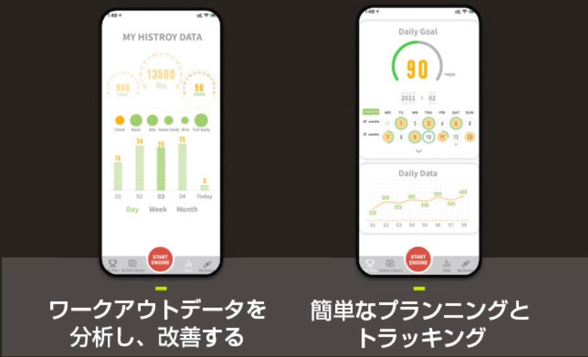 あなただけの目標を設定し、スマホアプリメニューの指示に従ってトレーニングすることができます。