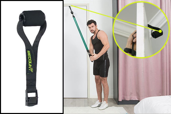 ワークアウトバーにレジスタントベルトをセットすれば、バーベルを持ち上げるような運動も可能です。