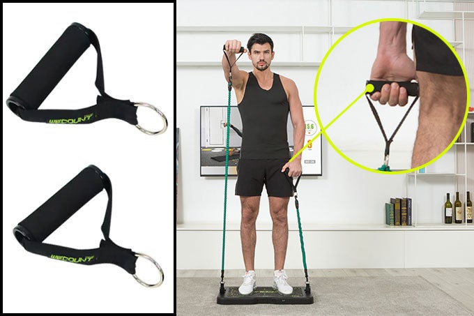 エクササイズ効果を高めるハンドルは、直立姿勢や床を使ったエクササイズの際に使用します。