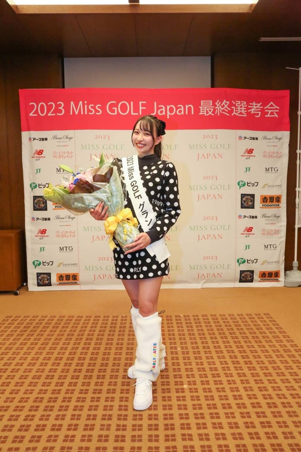 「幼少期からゴルフに打ち込む環境を与えてくれた両親に感謝するとともに、グランプリ獲得の報告ができることを嬉しく思います。これから一年間、2023 Miss GOLFとしてゴルフの楽しさを多くの方に伝えて、ゴルフ人口を増やしていければと思っていますので。私自身、今まで以上にゴルフを楽しんで参ります。」」