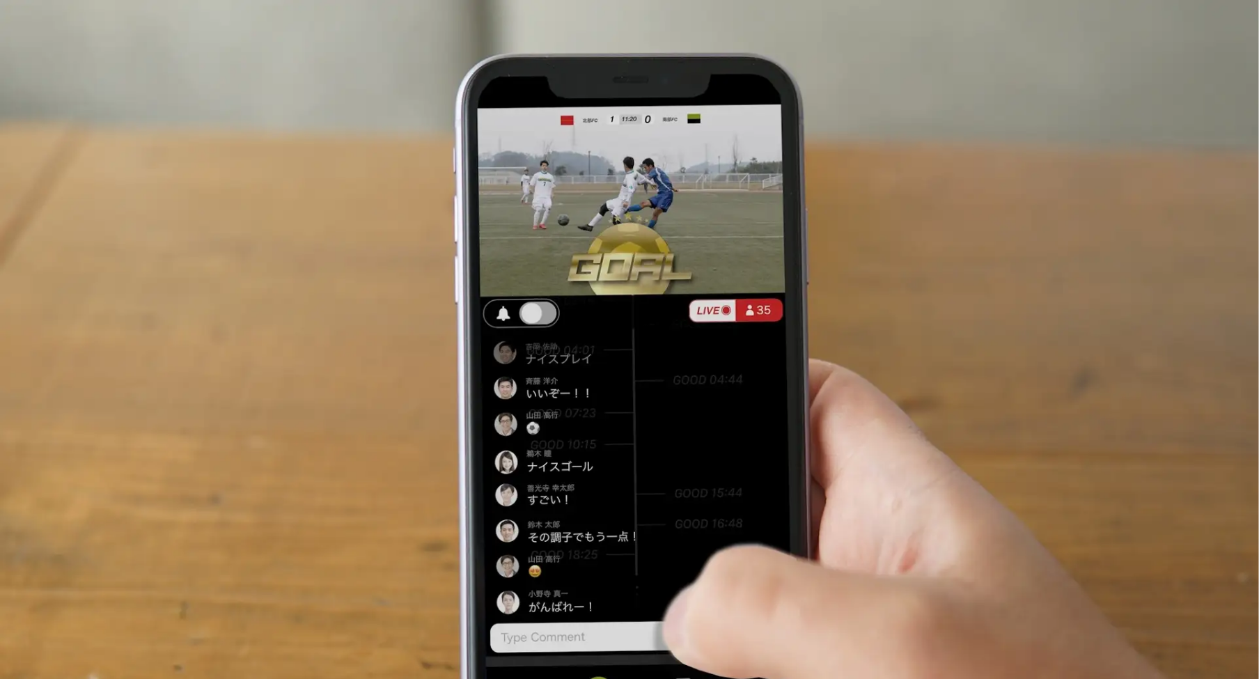 スコアやゴールアニメーションといった視聴体験そのままに、iPhone一台でライブ配信ができます。視聴者はライブで観戦しながらコメントしたり、通知で速報を受け取ったりと、自分のスタイルで試合を観戦ご協力することが可能になりました。