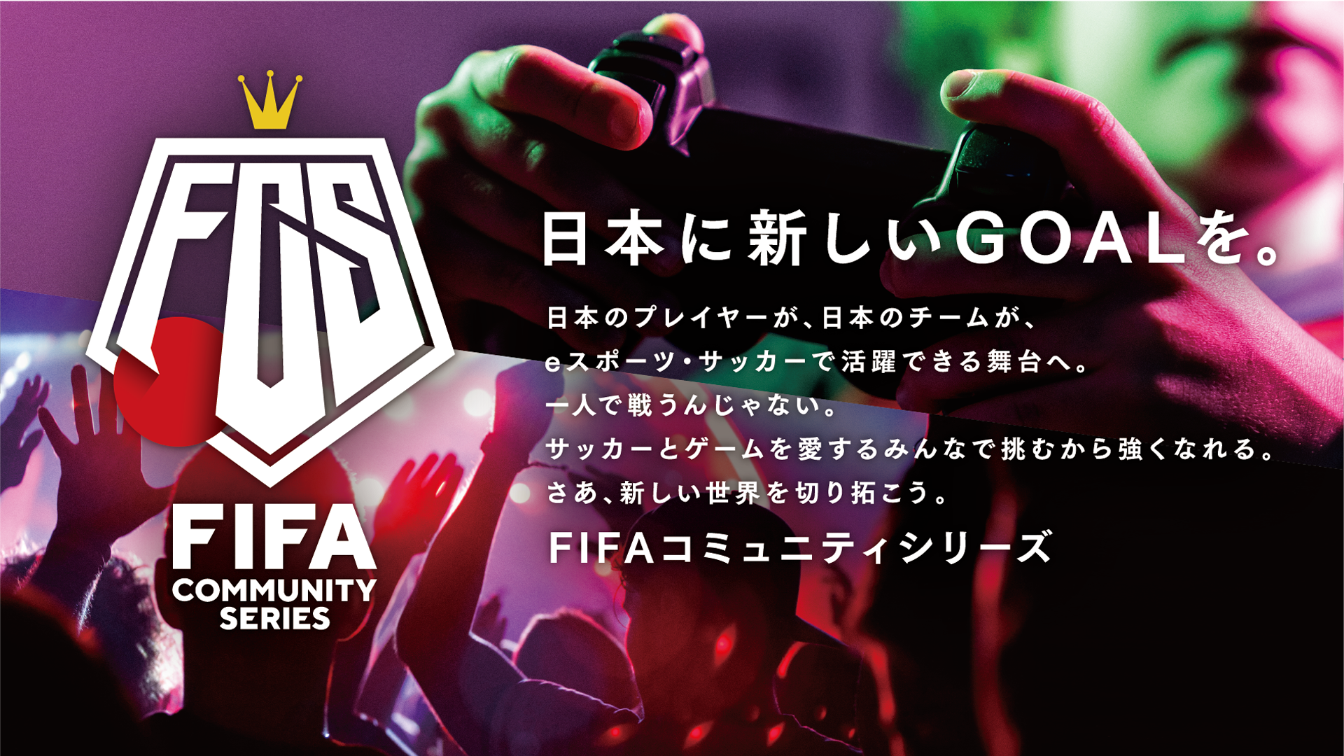 『FIFAコミュニティシリーズ』は「日本に新しいGOALを。」をビジョンに掲げます。シリーズ形式で継続的に大会を開催することで日本国内に競争的かつ楽しい競技環境や観戦文化を整備し、最終的には世界大会で優勝する日本人選手を輩出する目標を通じて、サッカーとゲームを愛するみんなで新しく豊かなスポーツ文化を創造していきます。