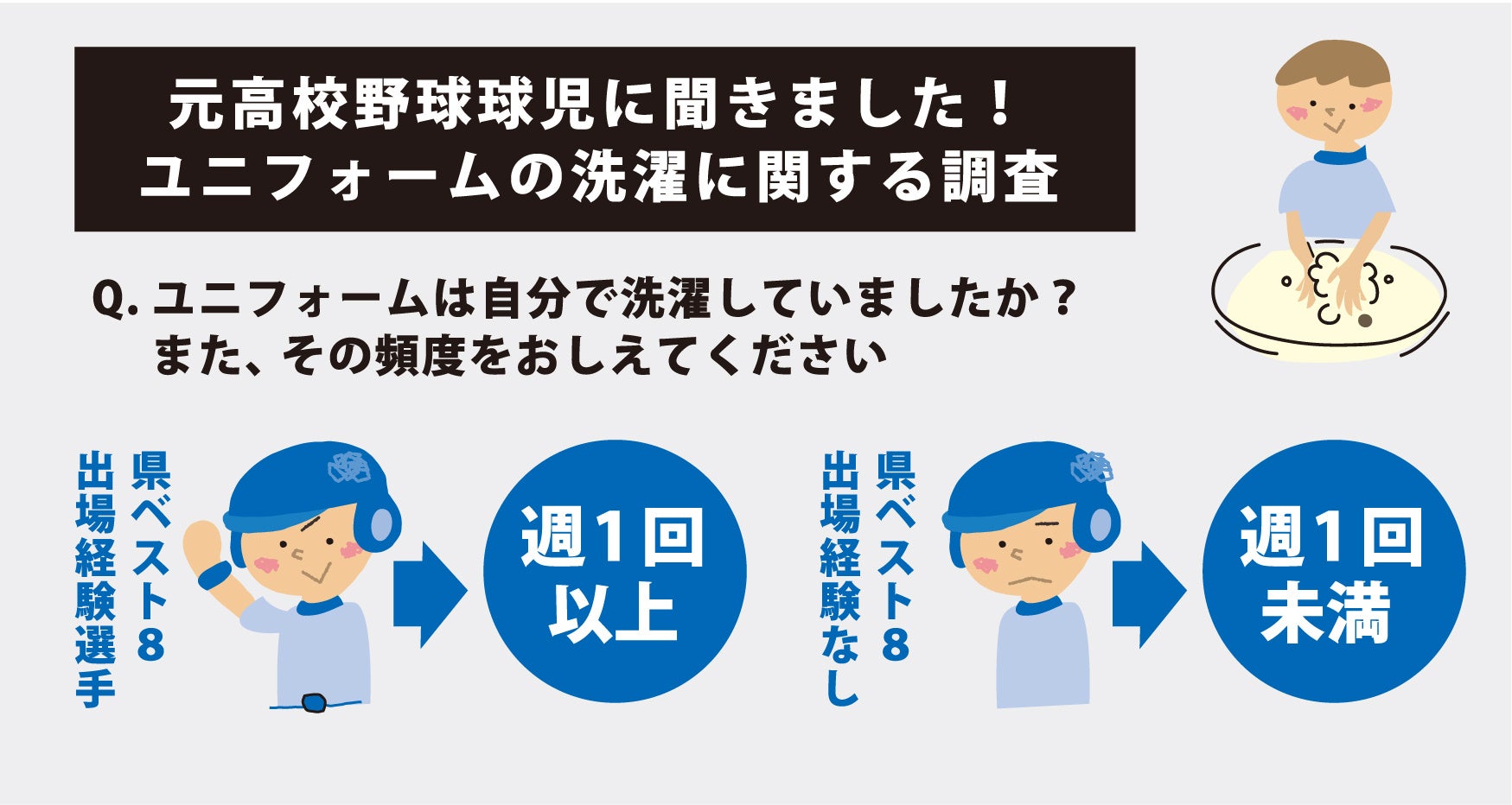 ある著名なメジャーリーガーは、学生時代から技術的な訓練以外の「ツキを呼ぶ」生き方を大切にしていました。サンコーでも2021年10月、元高校球児59名に調査を実施したところ、都道府県ベスト8出場経験のある選手は、出場経験のない選手に比べて自分でユニフォームを洗っている頻度が高いことが分かりました。