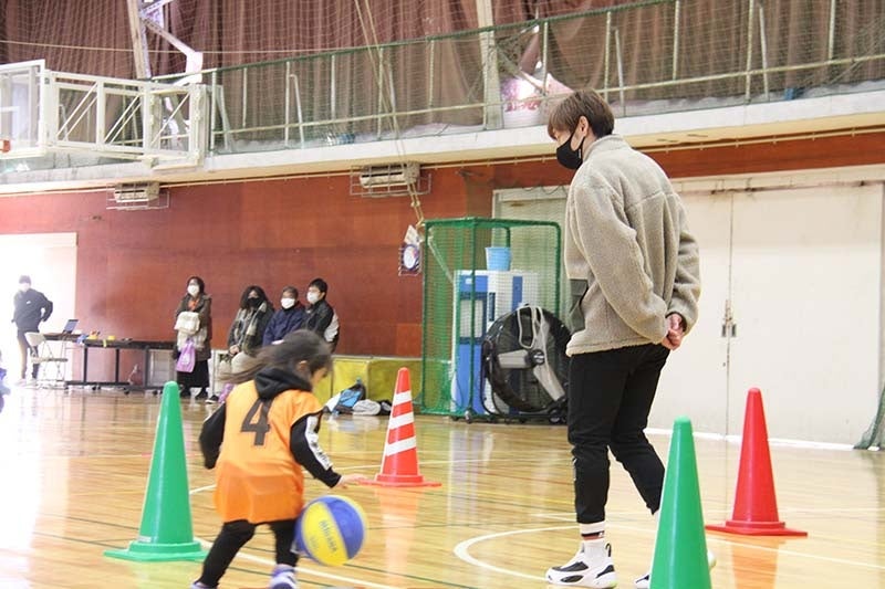 参加者の皆さんには、バスケットボールを含む3つの種目(サッカー・バレーボール)をローテーションにて体験いただきました。