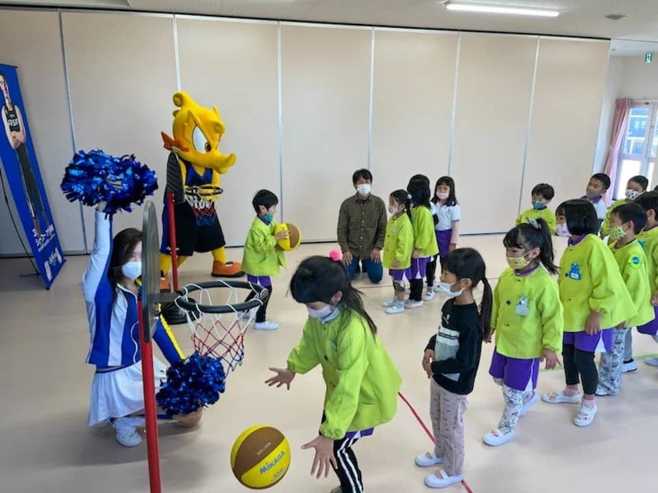 2022年12月16日(金)、シーホースくんとSuper GirlsのASAMIが麦のうさぎ保育園を訪問し、園児の皆さんと一緒にクイズやダンスを楽しみました。