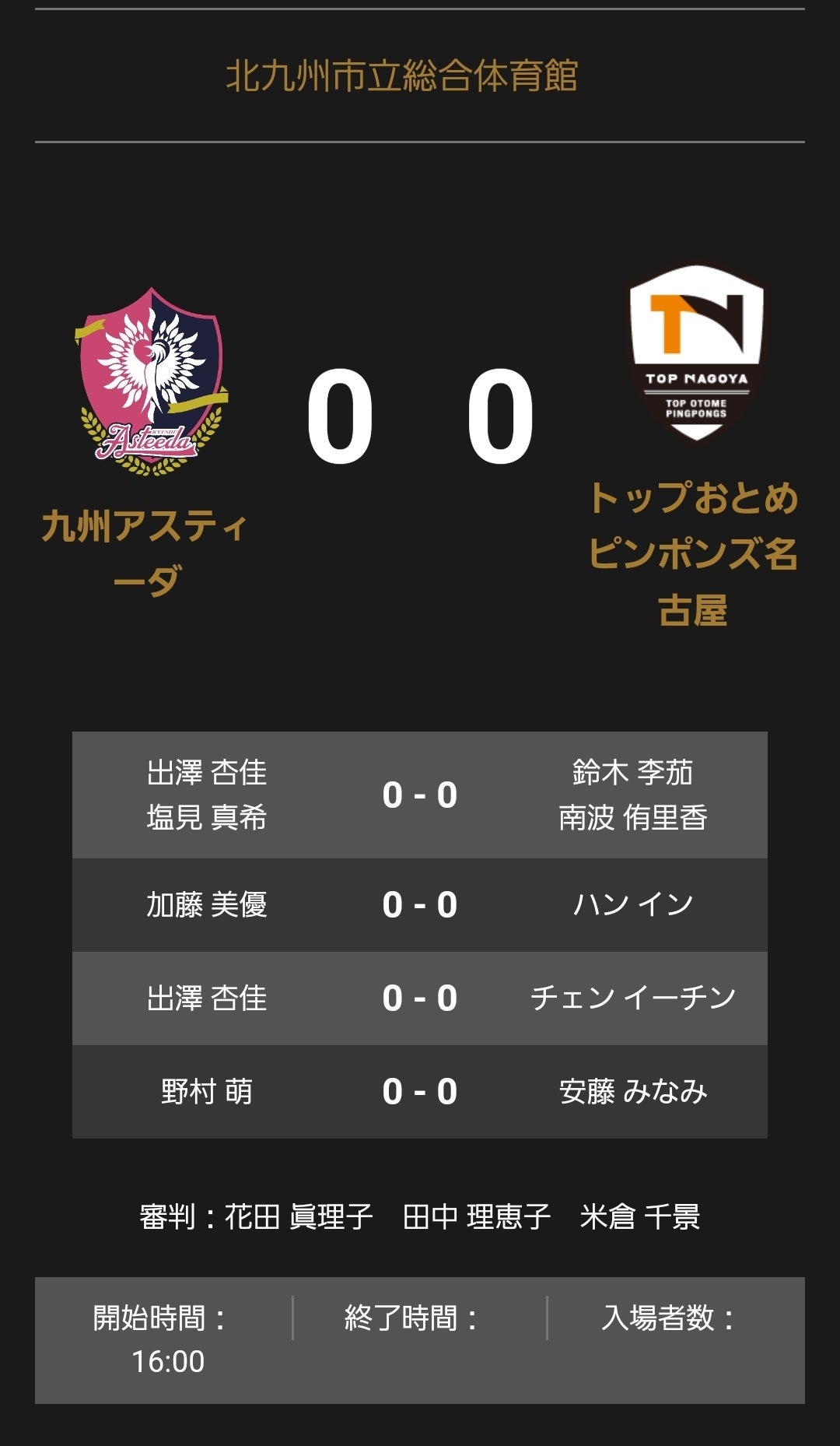 九州アスティーダ vs トップおとめピンポンズ名古屋