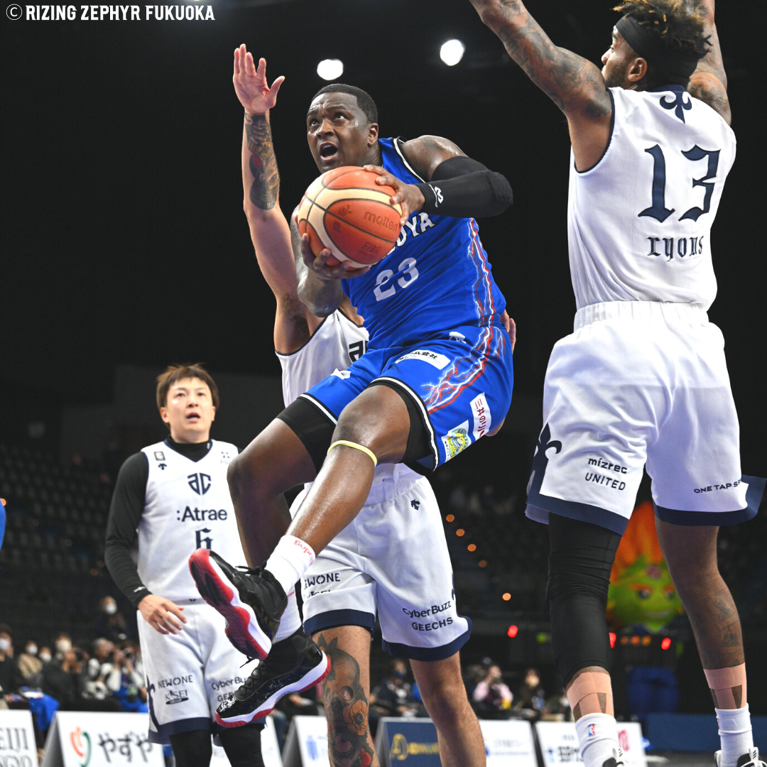 後半の挽回を狙う福岡は、#23ハリスの個人技、#11白戸の連続3Pシュートで応戦するも、要所でのリバウンドとインサイドを守ることができず3連敗を喫した。