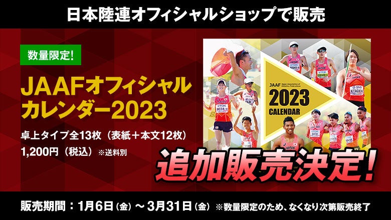 2022年は、スポーツ界にとって特別な「東京2020オリンピック」を経て、「新たなスタート・チャレンジ」として挑んだ1年間でした。ここから続く2023年ブダペスト世界陸上、2024年パリ五輪・2025年東京世界陸上へ明るい未来が続くよう、今シーズンの活躍が顕著であった選手を中心に、2023年のカレンダーを制作いたしました。