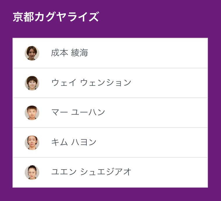 ノジマTリーグ 2022-2023シーズン 公式戦 1月8日 仙台市宮城野体育館(宮城県) 開催の「京都カグヤライズ vs 九州アスティーダ」のベンチ入り選手を発表いたします。