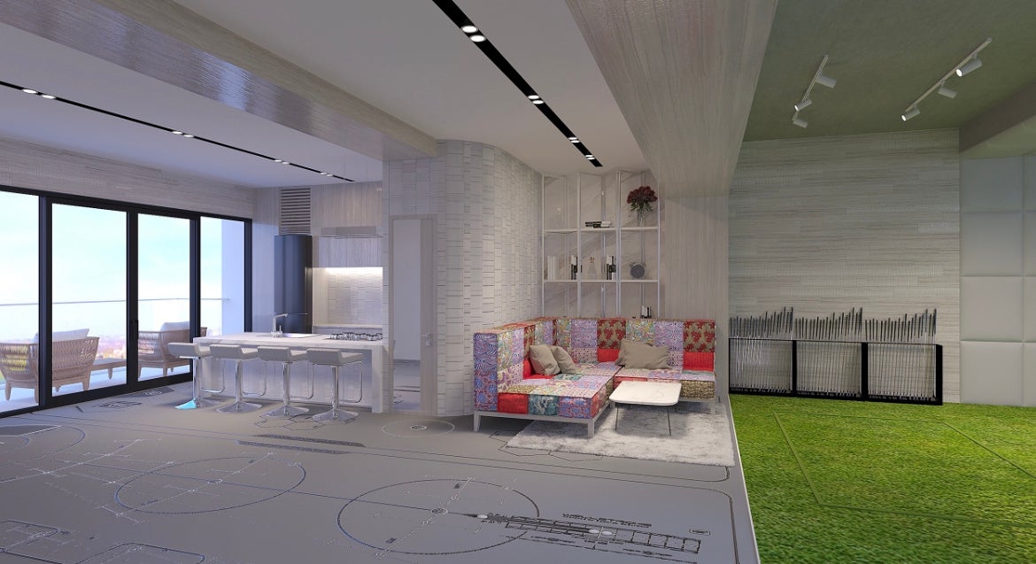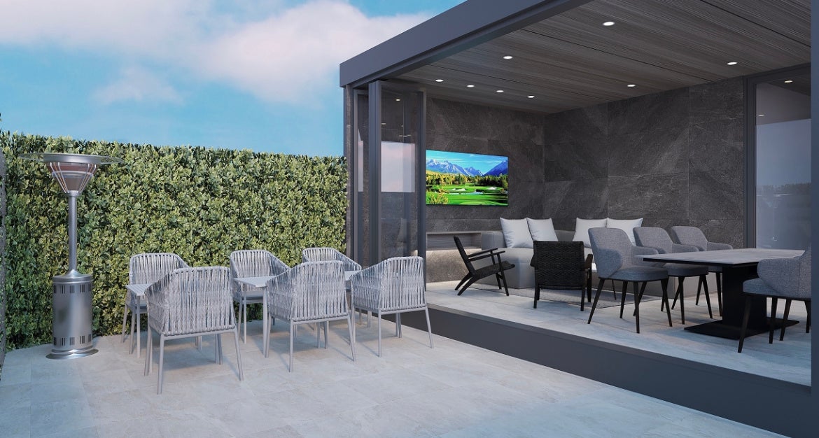 そのインドアゴルフの上階に広々としたテラスを作り、自然の光と風に包まれながら本を読んだり自分だけの優雅なひとときを過ごすことができる空間を作り上げました。