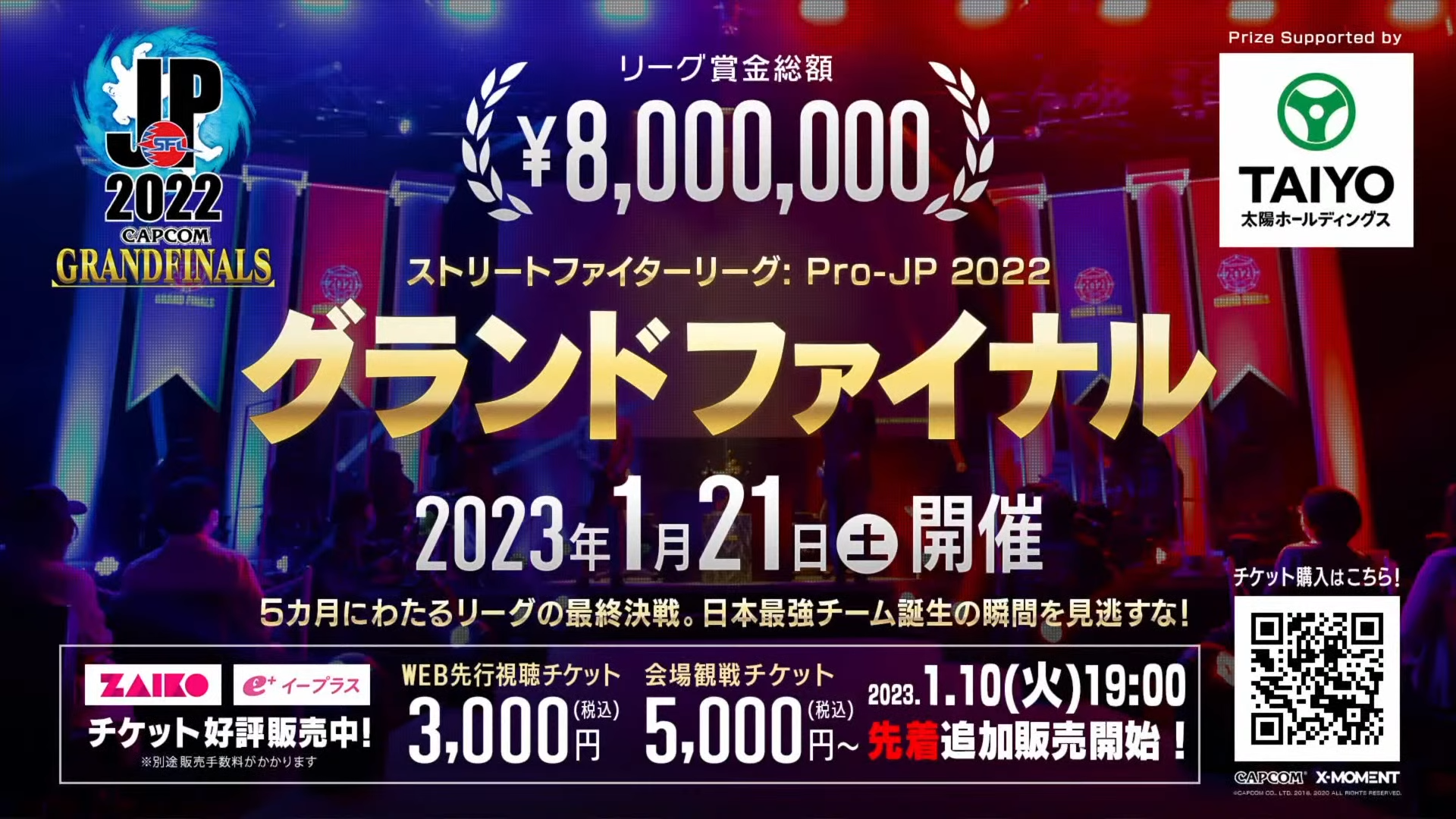 そしてなんと「グランドファイナル」では、日本最高峰の闘いをリアルで楽しめる「会場観戦チケット」がイープラスより数量限定で本日1月10日(火)19:00より販売開始します。