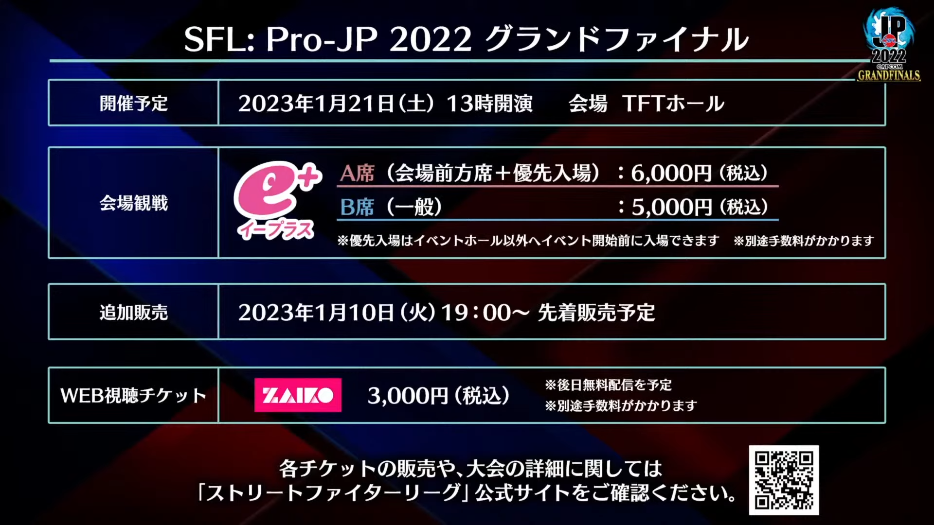 - 「ストリートファイターリーグ: Pro-JP 2022」グランドファイナル応援番組配信!