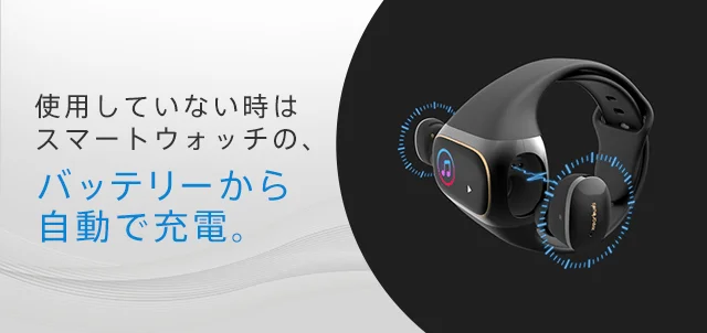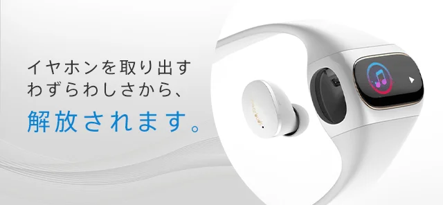 - コンパクトでスタイリッシュなスマートウォッチに、ハイレゾ対応高性能ワイヤレスイヤホンを搭載。