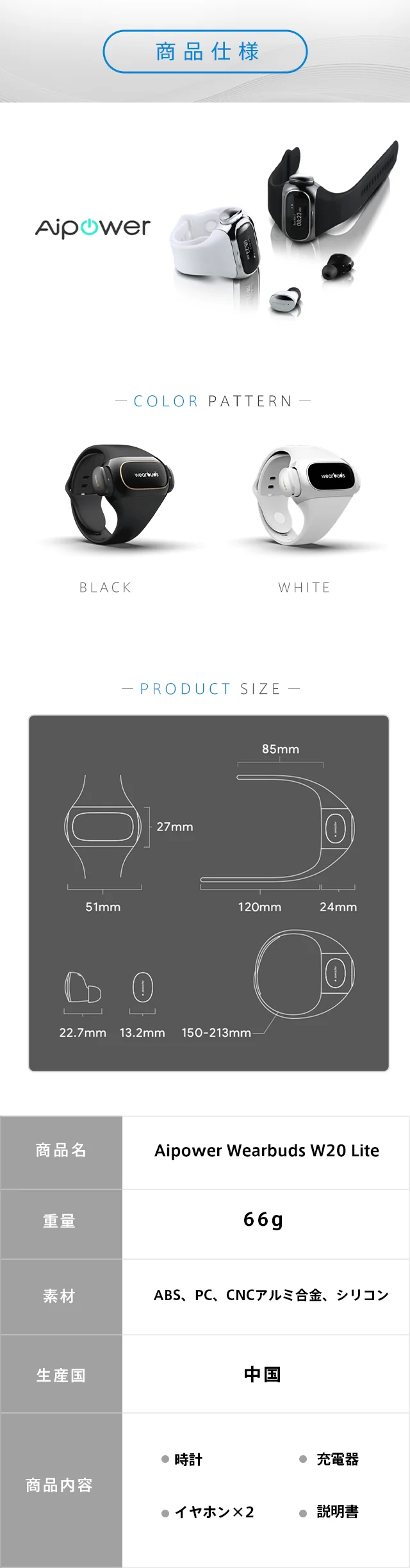 《イヤホン搭載のコンパクトサイズスマートウォッチ【Aipower Wearbuds W20 Lite】の3つのポイント》