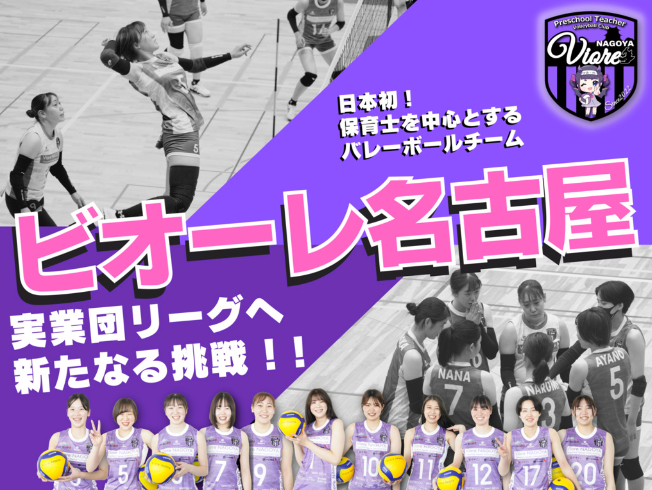 ビオーレ名古屋は2022年4月に保育士・栄養士・看護師・スポーツ指導員を中心として発足したバレーボールチームで、「Vリーグ昇格」を目標に保育とバレーボールを両立しながら、日々練習に励んでいます。