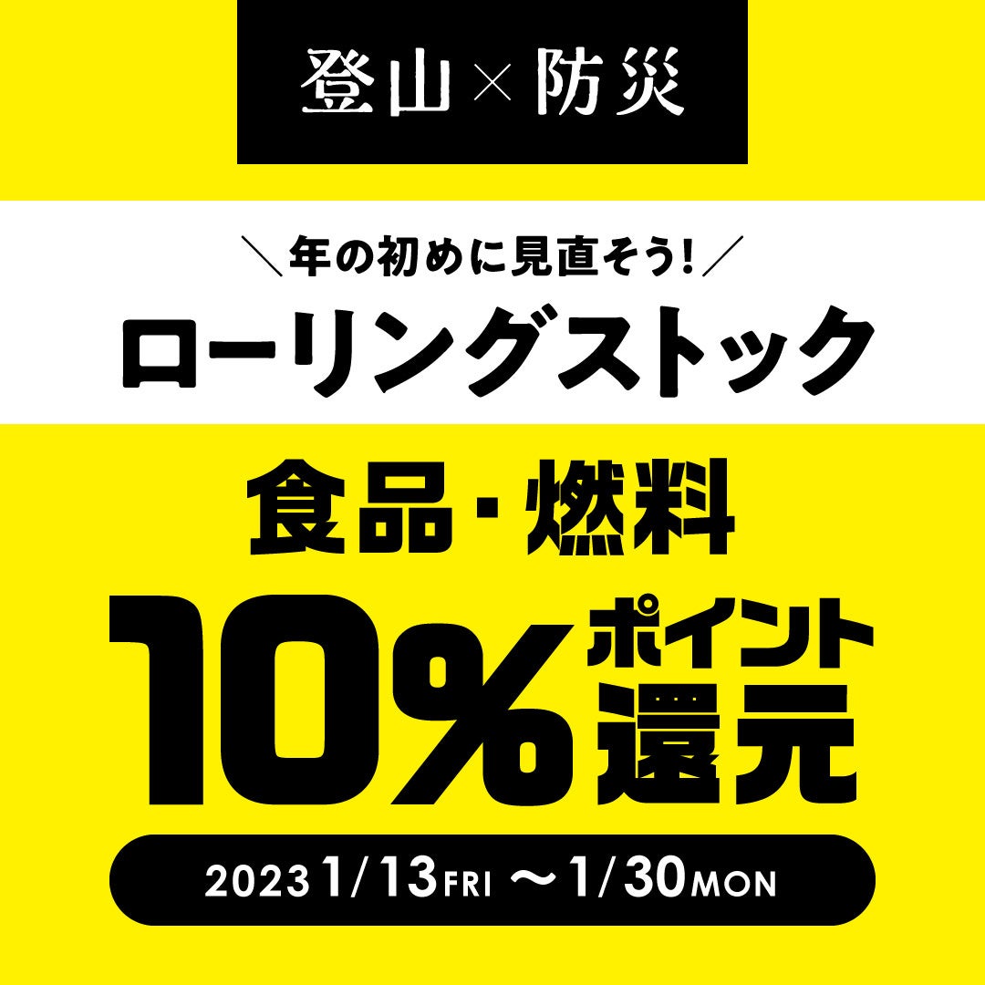 また、同期間中、年の初めに見直したい「登山×防災 食品・燃料10%ポイント還元」も開催します。