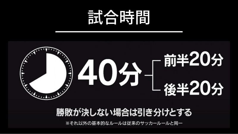 基本的なルールは従来のサッカーと同一だが、唯一違うのは試合時間