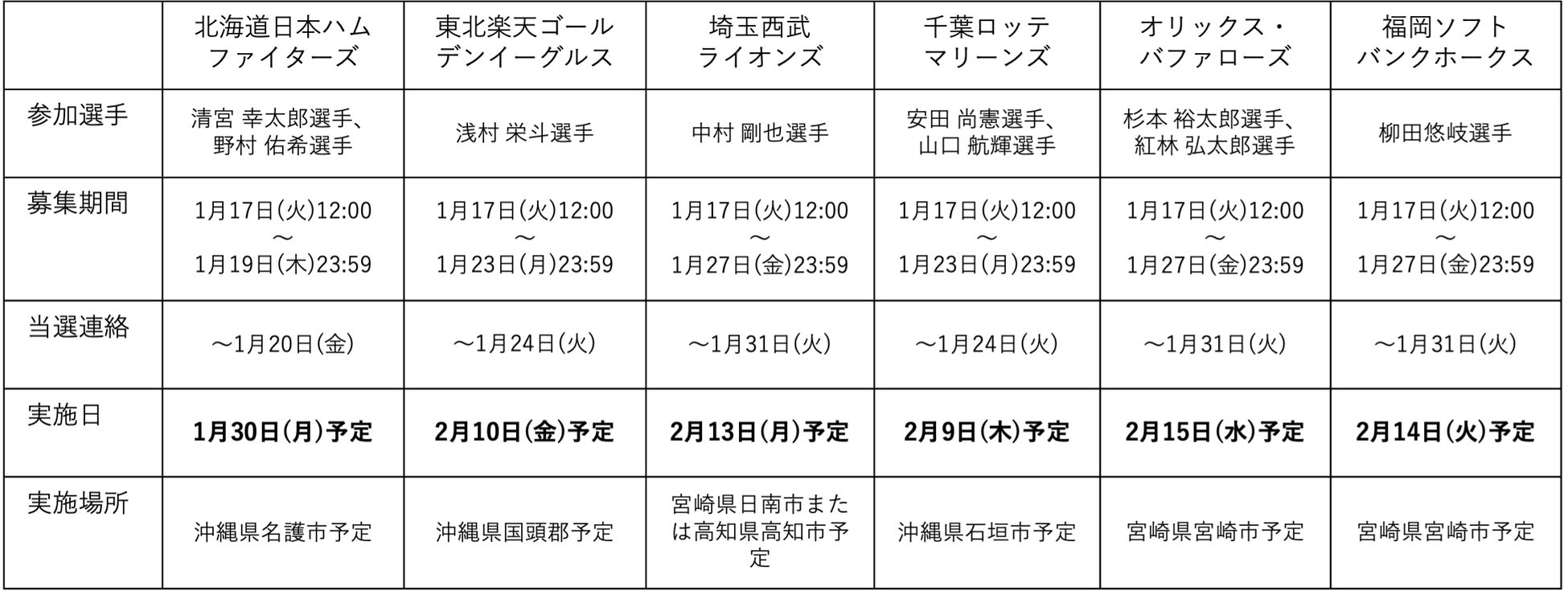 ・募集期間:球団ごとに異なります。下記球団ごとの情報をご確認ください。