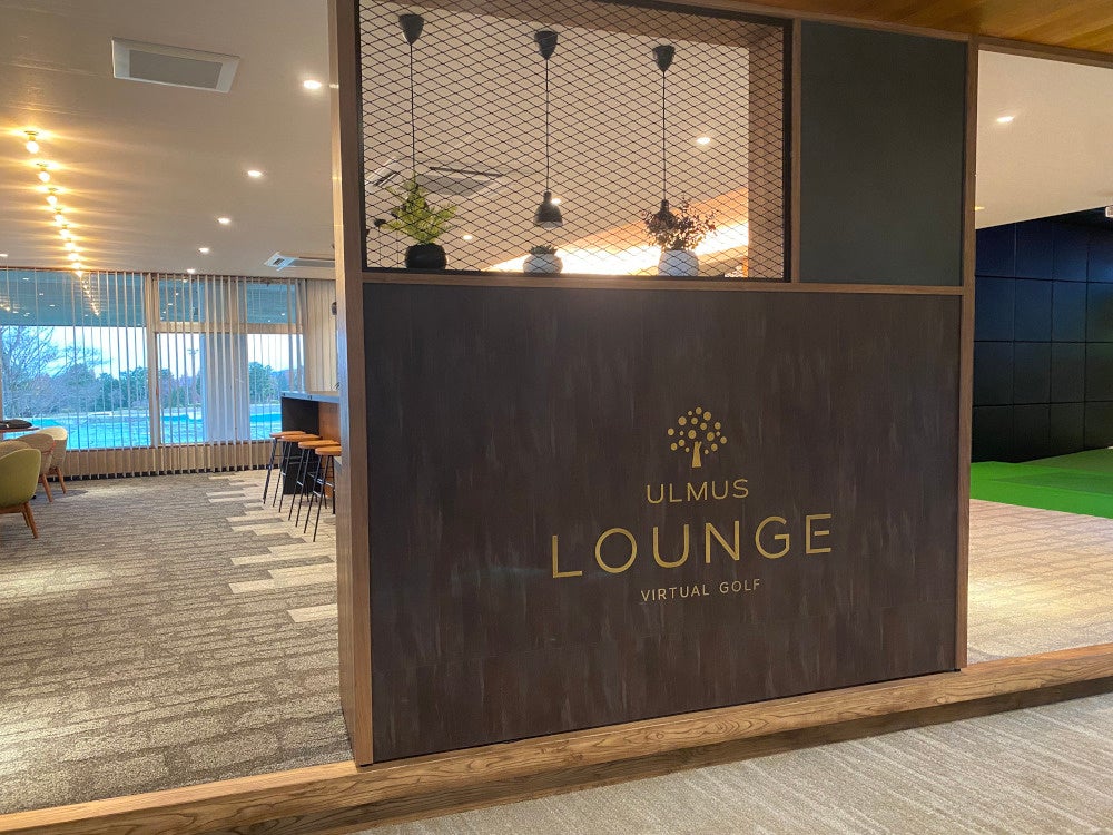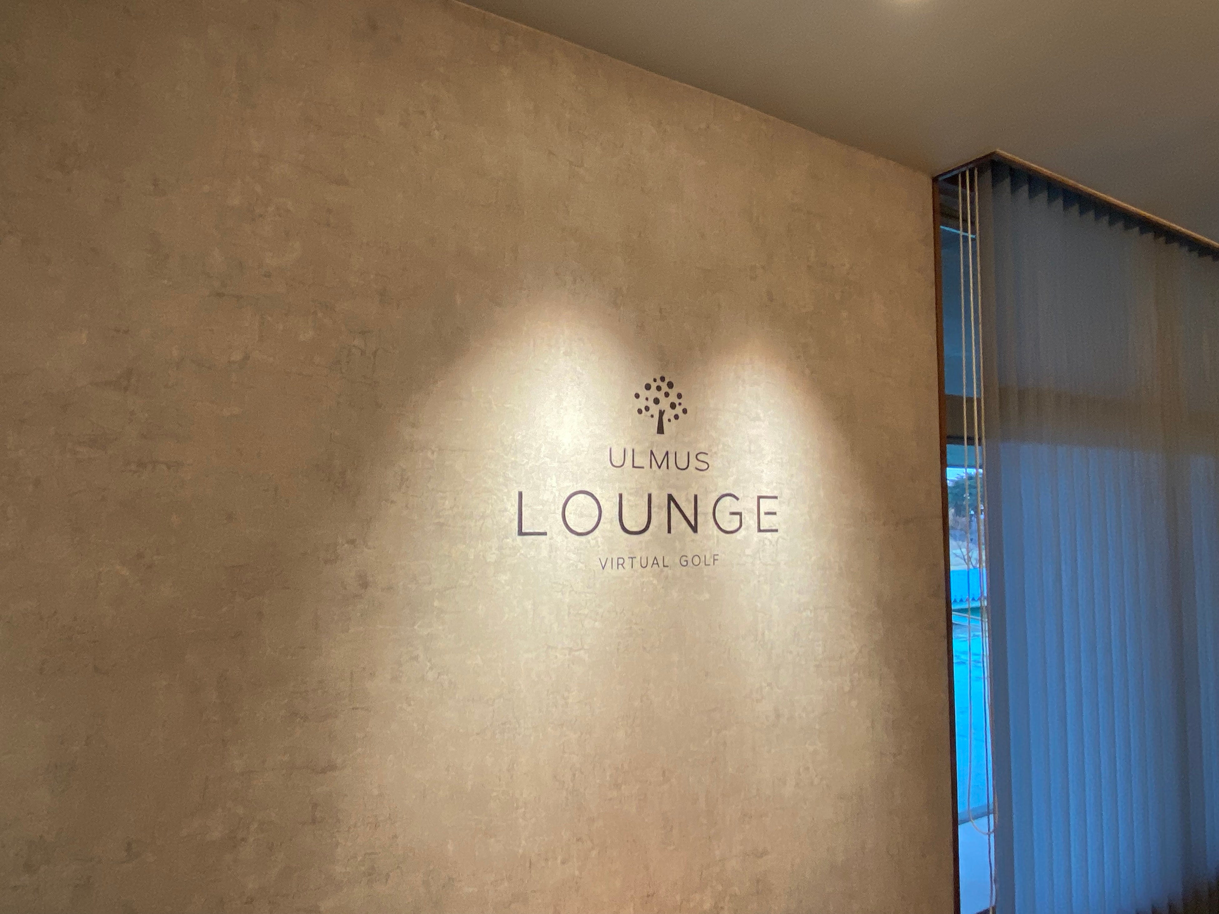ラウンジの入り口と室内の壁には、「ULMUS LOUNGE」のサインが設置されています。