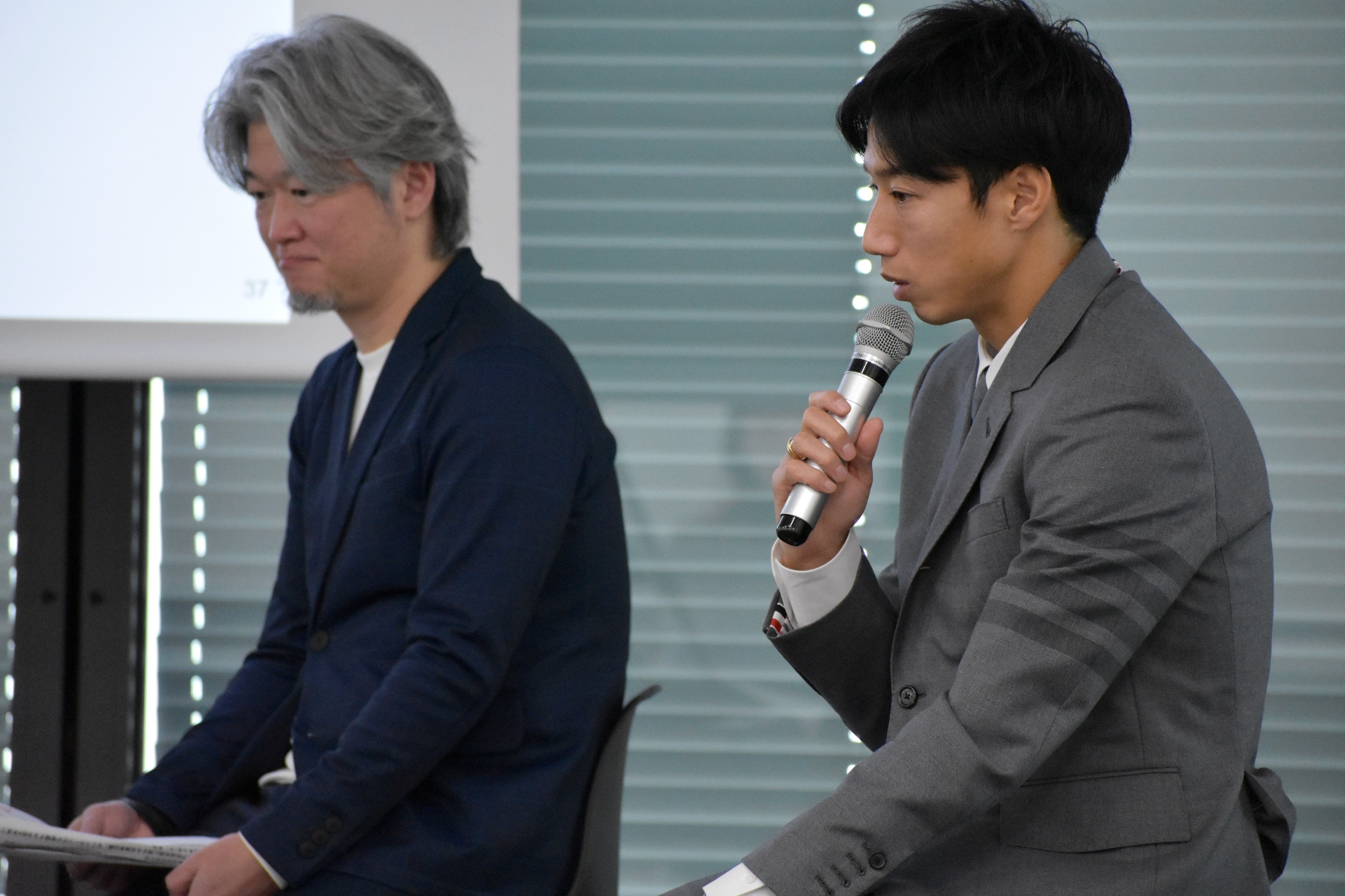 大津選手はデュアルキャリアにより、競技で培った能力を活かせることに言及し、「現役中に様々な経験をすることに大きな意味がある。自身もサッカー(競技)以外に触れることで、サッカー(競技)に還元することができた。」と経験を振り返ってお話されました。また、仕事と競技の相乗効果について、「プロになって間もない頃は自分のことしか考えられなかったが、ビジネスを始めてからは社長として社内の体制を見るようになり、競技でも監督やチームメンバーの求めていること、自分が求められていることを理解することができるようになった。」とコメントしました。