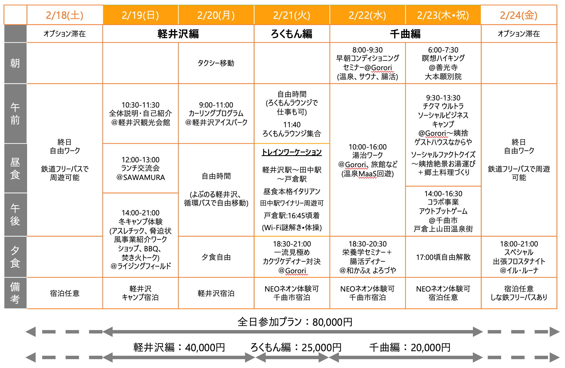 (日帰り〜3泊4日での参加、プログラム前後の2/18(土)、2/24(金)もフリーパスを使って周遊が可能です)