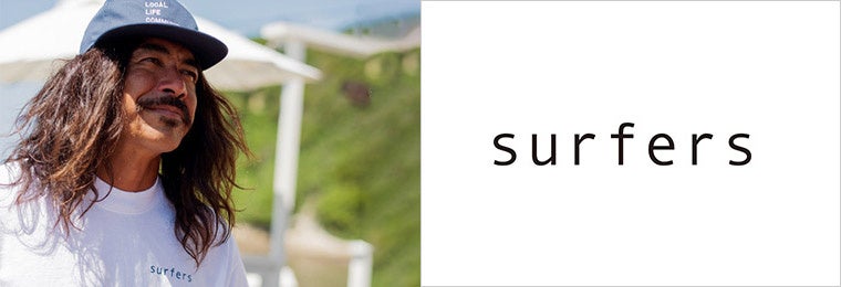surfersはサーファーの視点でつくられたビーチハウスです。オリジナルTシャツや1点モノのウェアなど、扱うアイテムもサーファー目線のアイテムばかり。フォトグラファーやイラストレーターの作品がプリントされたTシャツ等もあります。「Localだけどグローバル、湘南発の最先端!」それがsurfersのスタイルです。