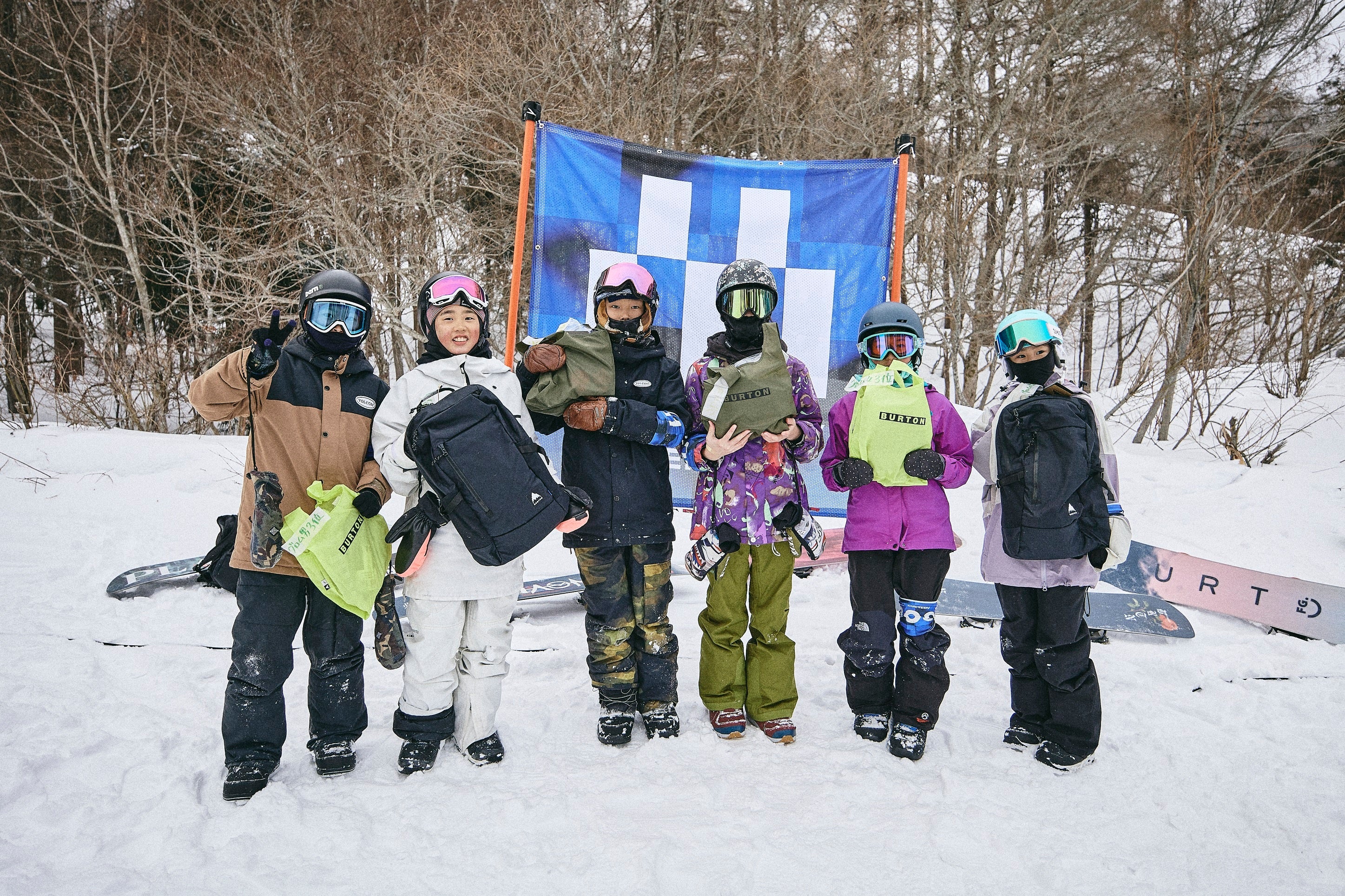 1月21日のイベント当日、アルツ磐梯の会場には、5歳から57歳まで幅広い年齢層のスノーボーダーが早朝から集まりました。バンクドスラロームには145名、パークセッションには68名、合計213名が参加。今井胡桃、降旗由紀、中山悠也、高橋龍正といったBurtonライダーに加えて、 Burton創設者・ジェイク・バートン・カーペンターの息子であり、グローバルのBurton Mystery Seriesをリードしているジョージ・バートン・カーペンター自らも共にスノーボードを楽しみました。