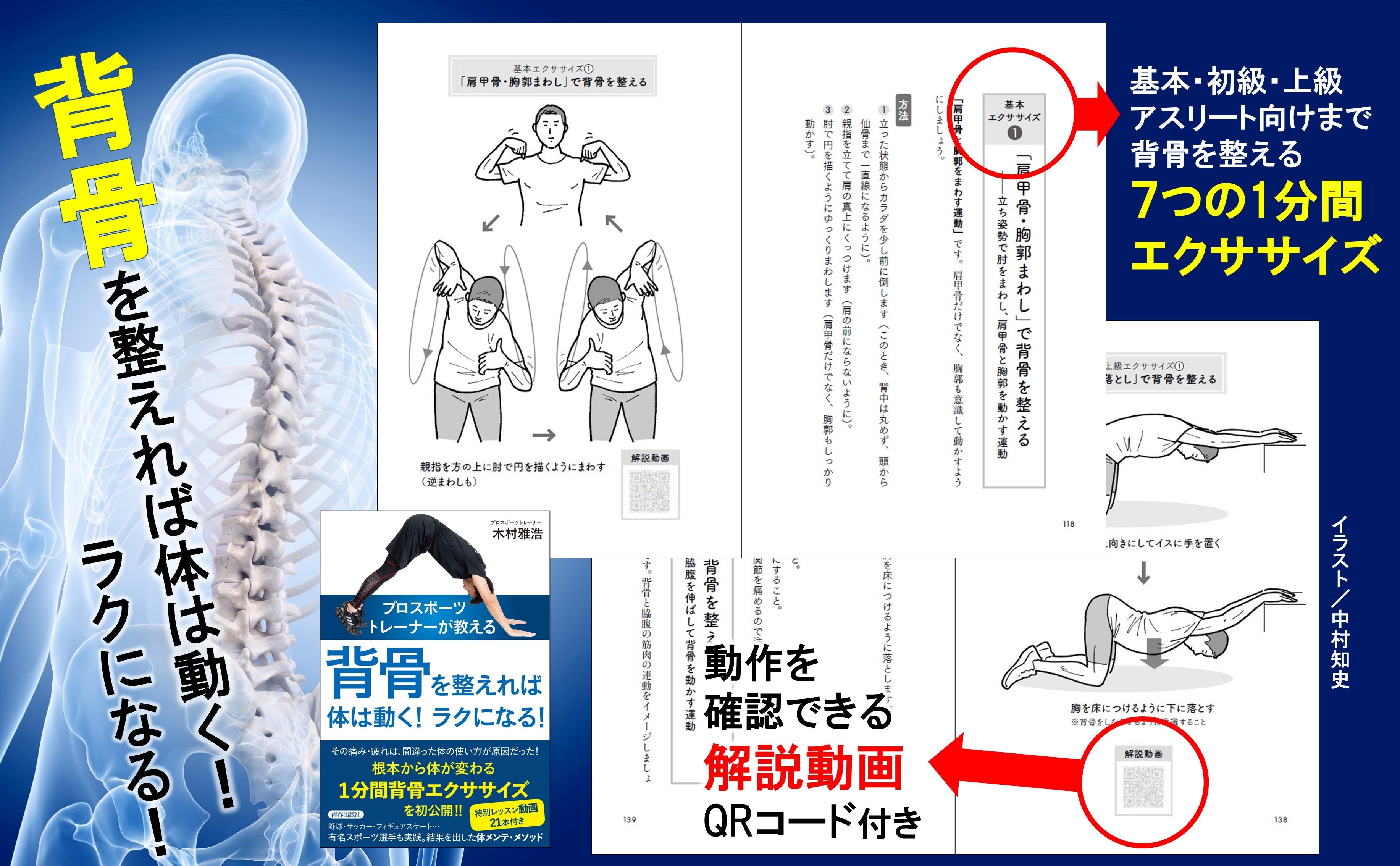 プロスポーツトレーナーの著者が、「背骨を整える1分間エクササイズ」で劇的に“動ける体”に変わるメソッドを【特別レッスン動画21本付き】で紹介します。